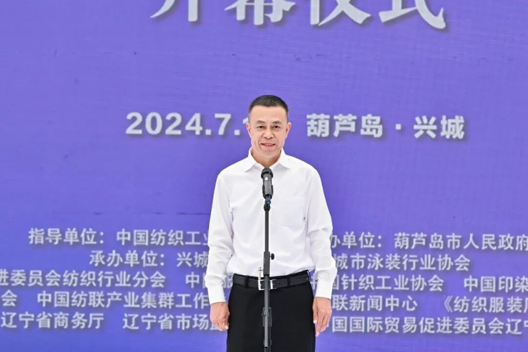 辽宁工信厅党组成员、副厅长郑岩表示,希望兴城泳装进一步提质升级,坚持高起点规划、高标准建设、高水平管理,全力打造高端要素聚集、创新能力凸显、经济效益突出的产业地标,持续推进产业数字化智能化改造,抓住国家推动大规模设备更新和消费品以旧换新政策机遇,以“科技、时尚、绿色”为重要方向,积极支持泳装企业开展设备更新,加快补齐产业短板,聚焦泳装产业链优势潜力、短板弱项和空白环节,擦亮兴城“中国泳装名城”这张金名片。“随着新技术革命呼啸而来,新业态新模式不断激发新需求、创造新供给。”中国纺织工业联合会副会长、中国国际贸易促进委员会纺织行业分会会长徐迎新表示,在新的形势下,兴城泳装沿着加快建设“全球泳装之都”的轨迹,向着高端化、智能化、品牌化、国际化的发展目标奋进具有重要战略意义,要准确把握兴城泳装的产业优势和市场优势,加快以新质生产力赋能兴城泳装现代化产业体系建设,进一步扩大“兴城泳装”这一区域品牌的国内国际影响力。他建议,一是因地制宜,做强做优兴城特色泳装产业链;二是推动科技创新,赋能兴城泳装现代化产业体系建设;三是深耕品牌建设,擦亮“中国泳装名城”的金字招牌。随后,葫芦岛市委副书记、市长何志勇宣布2024东北亚(兴城)国际泳装博览会开幕。