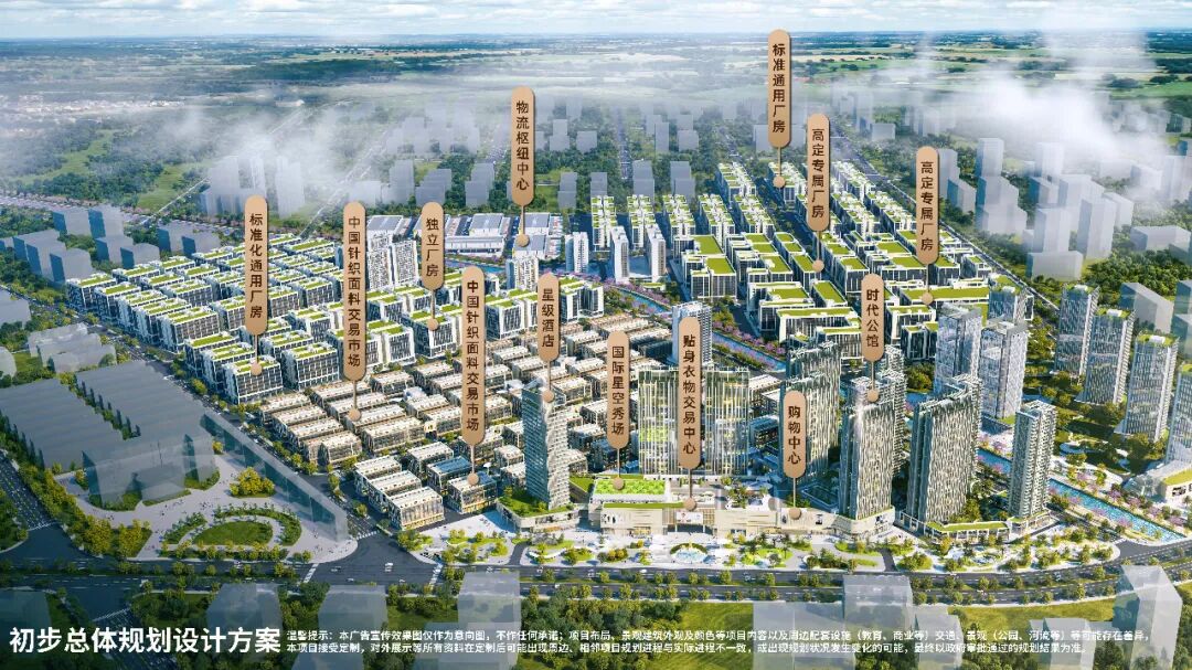 汕头国际纺织城位于潮阳区谷饶镇、贵屿镇、铜盂镇交界处,建设内容包括“四大工程”中的全球纺织品采购中心、智能化纺织工业园等两大工程项目,将打造集技术研发、生产制造、产品展销、智慧云仓为一体的全球纺织服装产业枢纽中心。汕头国际纺织城总规划用地面积达5100亩,计划总投资额305亿元,首期(核心区)建设面积2090亩,投资122亿元。其中,全球纺织品采购中心将建设纺织布料市场、原辅料批发市场、商铺式市场、纺织设备市场、高端商务酒店、创意直播大厦、品牌总部办公中心、品牌展馆、纺织人才公寓等。智能化纺织工业园区则计划建设独栋厂房和街铺式通用厂房,配建行政办公、员工生活中心等生活服务配套设施。